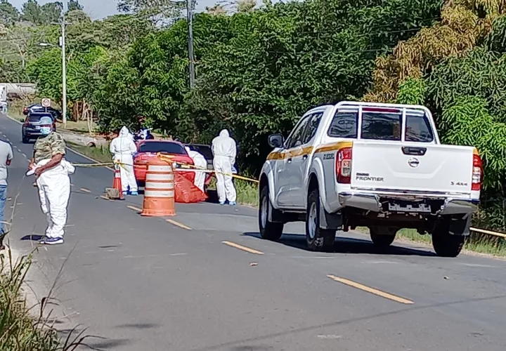Posteriormente, sobre las 6:00 a.m. de hoy, martes, la Policía Nacional (PN) fue alertada de la existencia de un hombre sin signos vitales que presentaba dos disparos en la cabeza, dentro de un auto sedán rojo, en el tramo vial de Llanito Verde, corregimiento de Hurtado en La Chorrera.