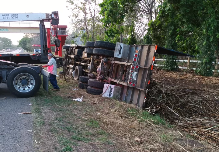 En el lugar algunas personas que observaron el vuelco informaron a este medio que solo vieron cuando el pesado camión cargado de caña se salió de vía y a los pocos minutos quedó con las ruedas hacía arriba y la carga esparcida en los hombros de la carretera Interamericana.