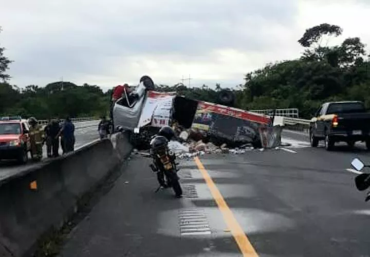 La mercancía que transportaba el camión propiedad de una empresa radicada en el distrito de Bugaba quedo dispersada en la vía.