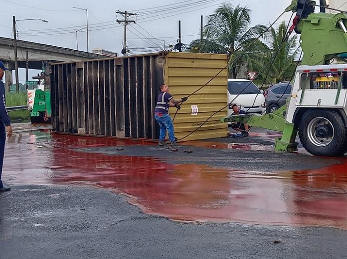 El contenedor transportaba aceite concentrado, por lo que se requirió la presencia de agentes del Cuerpo de Bomberos de Colón (CBC) para limpiar la zona.