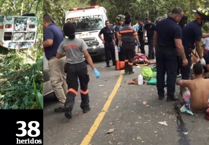 Unas 38 personas que viajaban en un “Diablo Rojo” resultaron lesionadas, tres de ellas de gravedad al salirse de la vía y volcarse el vehículo, que tenía como destino playa Las Cruces, en el corregimiento de Cermeño, distrito de Capira.