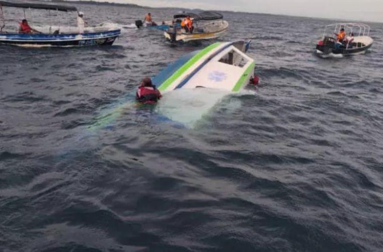 En la embarcación viajaban familiares y personal médico que fueron rescatados por unidades del Senan, Sinaproc y Bomberos, y llevados al Hospital Guillermo Sánchez Borbón. Su condición es estable.