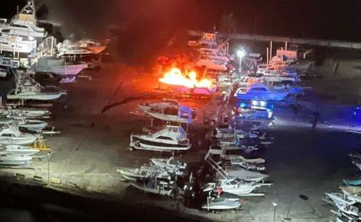 Uno de los yates que se encontraba dentro del Club de Yates y Pesca quedó envuelto en llamas anoche.