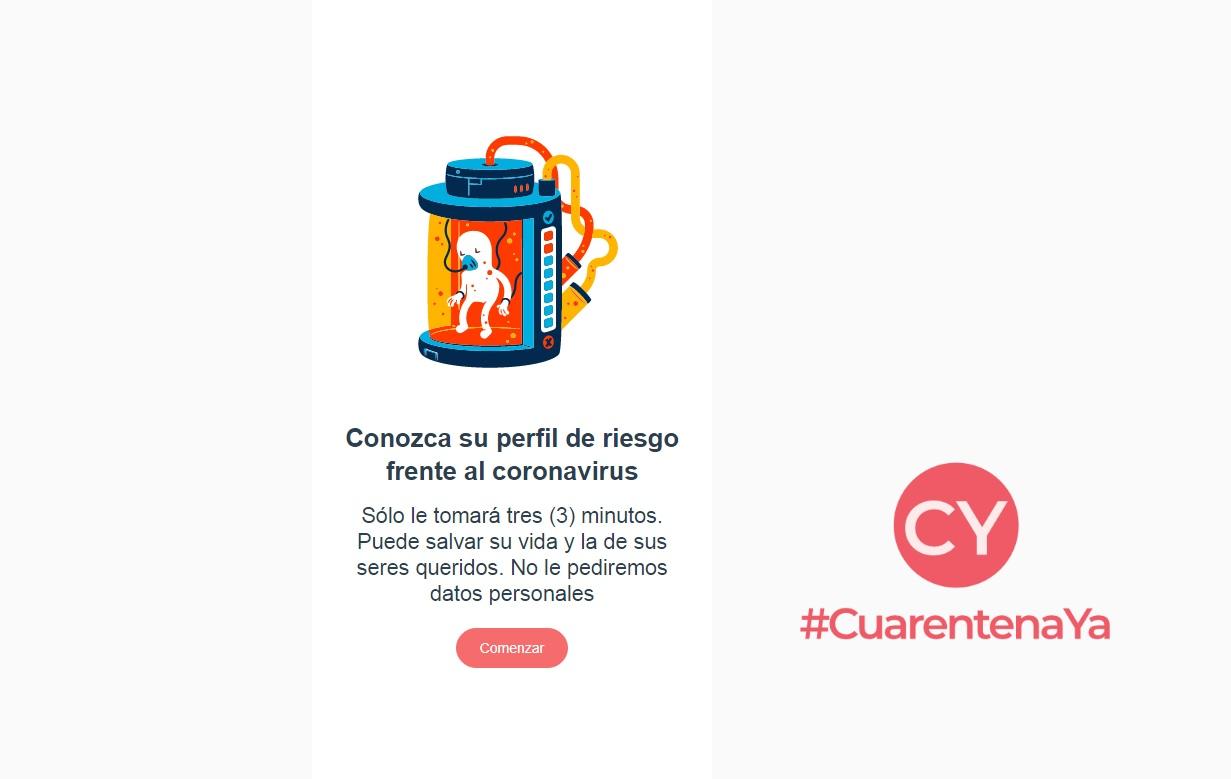 En internet hay un portal que se llama Cuarentenaya, el cuál a través de una serie de preguntas que usted debe contestar le permitirá tener una idea, según prometen, de cuál es el perfil de riesgo que usted tiene de contagiarse con el coronavirus Covid-19.