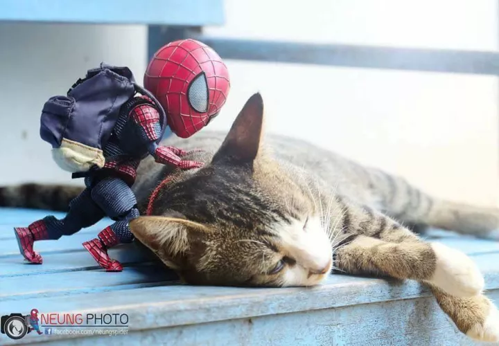 "El 9 de septiembre de 2017, tomé una foto de mi figura de Spider-Man con un cachorro y la compartí en mi página personal de Facebook", explicó Neung. "Se compartió más de 10,000 veces".