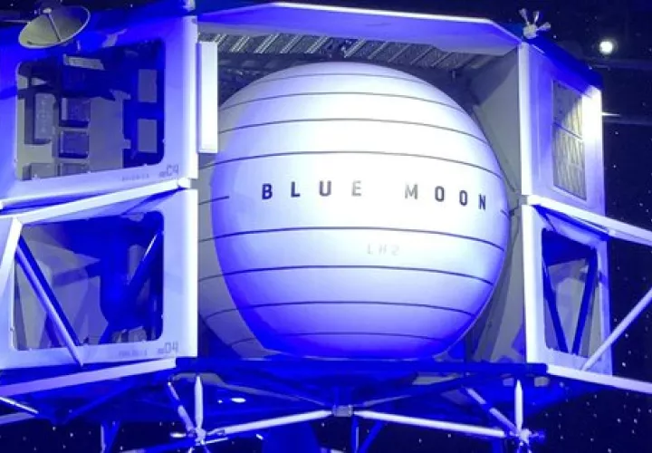 "Este vehículo va a la luna", dijo Bezos durante una presentación solo para invitados a los medios de comunicación y los ejecutivos de la industria espacial.