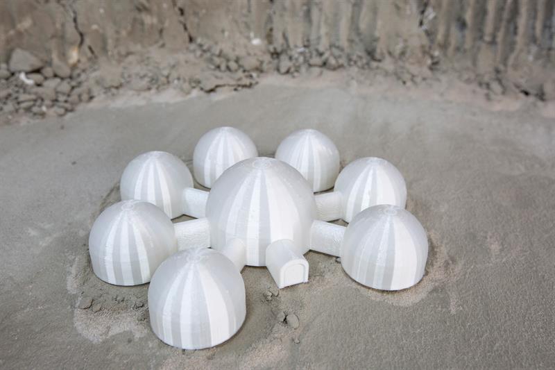 Cada una de las partes del proyecto, que también incluye un punto de despegue de transbordadores, vehículo para moverse por la superficie, invernadero y torre de transmisión, todos ellos desarrollados por otras universidades, ha sido monitoreada por trabajadores de la NASA.