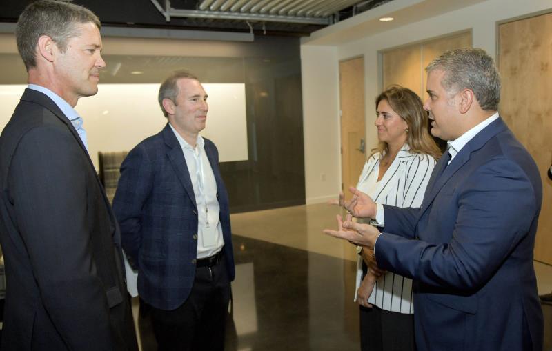 Después de Microsoft, Duque cerró su gira de dos días por la costa oeste estadounidense con una visita a la sede de Amazon en Seattle, donde se reunió con el presidente de la plataforma de servicios en nube de la firma, Amazon Web Services, Andy Jassy, y con unos 150 colombianos que trabajan en Amazon.