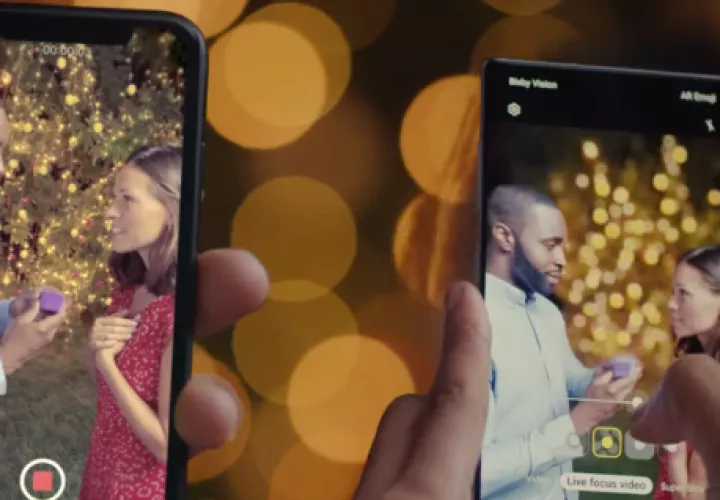 El gigante surcoreano publicó un video en el que se puede ver a una chica usando su Note 10 y aplicando el efecto "bokeh" (difuminación de fondo). Esta función no la tiene el dispositivo de la manzana.