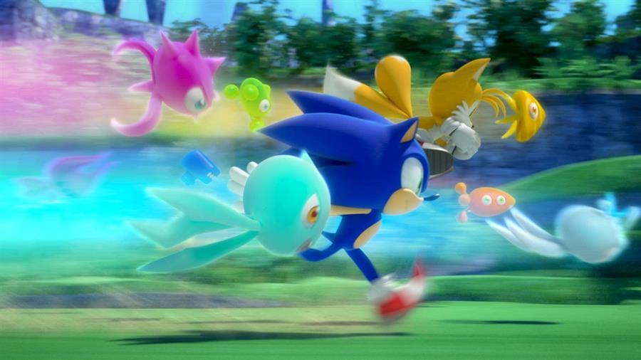 Solo por unos segundos se aprecia el planeta de donde proviene el erizo, que es una fiel copia del universo creado en los videojuegos con caminos para correr que dan vueltas de 360 grados.