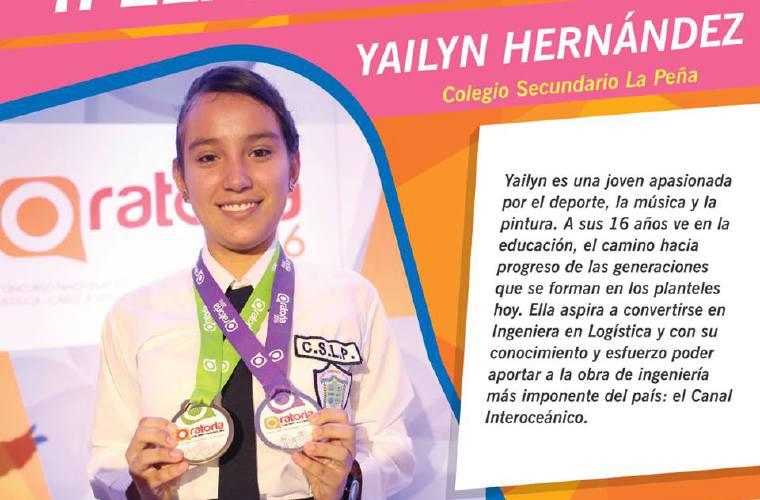 Yailyn Hernández Lima, estudiante del bachillerato en Ciencias del colegio secundario La Peña, obtuvo la representación de Veraguas para la gran final del Concurso Nacional de Oratoria, previsto para el próximo 13 de noviembre en el teatro Anayansi, de Atlapa.