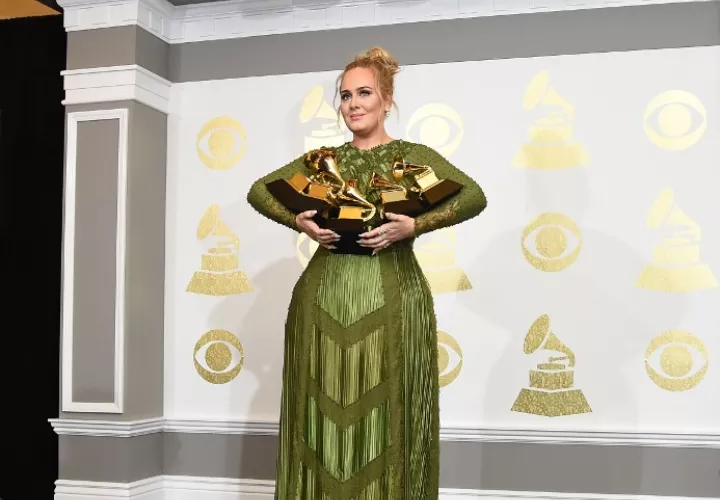 Adele ganó todas sus categorías y suma ahora 15 estatuillas. Es además la primera mujer en conseguir las tres principales categorías -álbum, canción y grabación del año- dos veces.