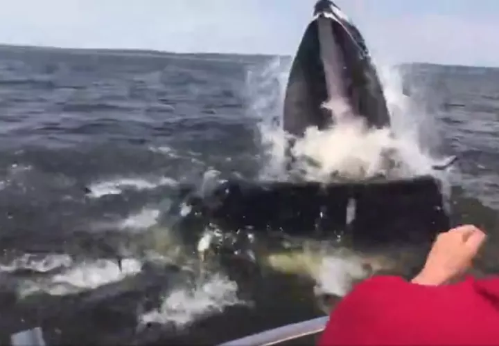 Una ballena emergió del agua de forma repentina y por poco no vuelca una lancha llena de pasajeros, quienes pasaron un mal momento.