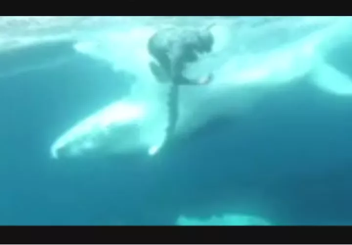 Ballena salta y cae a pocos centímetros de un buzo (Video)