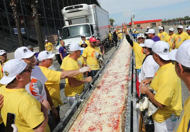 Hasta el sábado, el récord Guinness de la pizza más larga se registró en 2016 en Italia, en donde se preparó una de 6.082 pies (1,85 kilómetros).