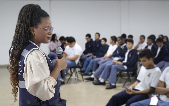 La capacitación estuvo a cargo de Ismaury Mosquera, oficial de Derechos Humanos, y Ana Escobar, de la Fundación Vida Mujer, quienes guiaron a los jóvenes en temas como autonomía personal, mitos del amor romántico y los límites que deben existir en una relación.