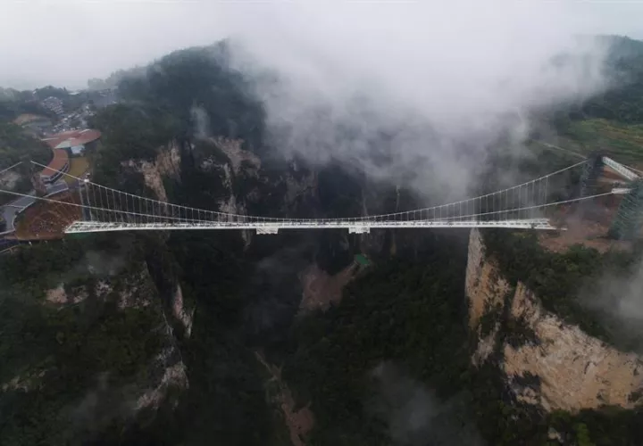 Esta estructura abierta forma parte de una autopista que une las ciudades de Hangzhou, capital de la provincia oriental de Zhejiang, y Ruili, en Yunnan.