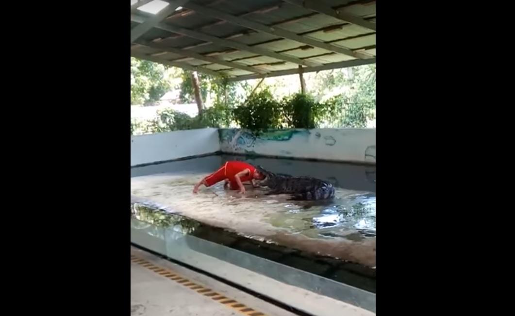 En el video en el que quedó plasmado el ataque se puede observar como, pasados unos 13 segundos, el cocodrilo cierra la boca y sacude la cabeza del entrenador de un lado a otro.
