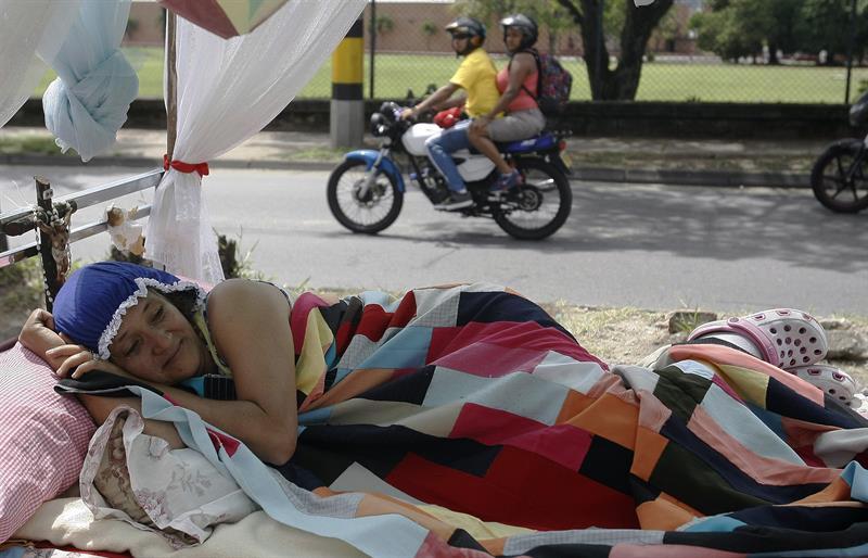Un centenar de habitantes del municipio colombiano de Itagüí, cercano a la ciudad de Medellín (noroeste), sacaron hoy sus camas, hamacas y colchones a la calle para descansar en la conmemoración del Día Mundial de la Pereza.