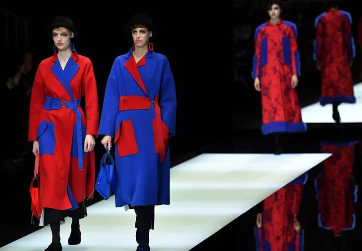 Los tonos negros, blancos y grises característicos de la casa italiana estuvieron muy presentes, pero el diseñador italiano también permitió que se colaran en su guardarropa femenino para el próximo otoño-invierno colores más vivos, como ya hizo con su otra firma Emporio Armani en la tercera jornada de la Moda de Milán.
