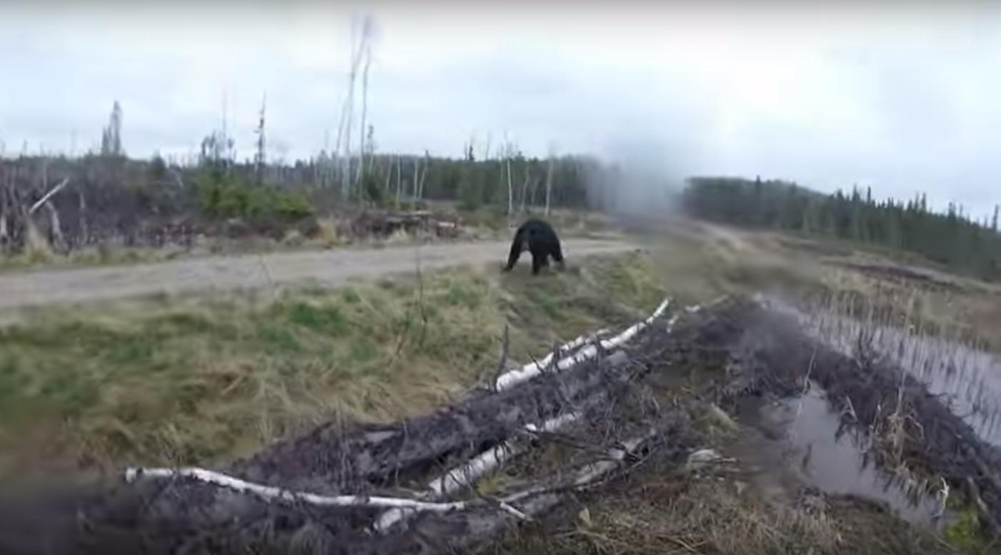 En un video que el cazador colgó en su cuenta de YouTube hace unos días, se aprecia cómo se adentra en un área plana, con pocos árboles y a lo lejos divisa un enorme oso negro.