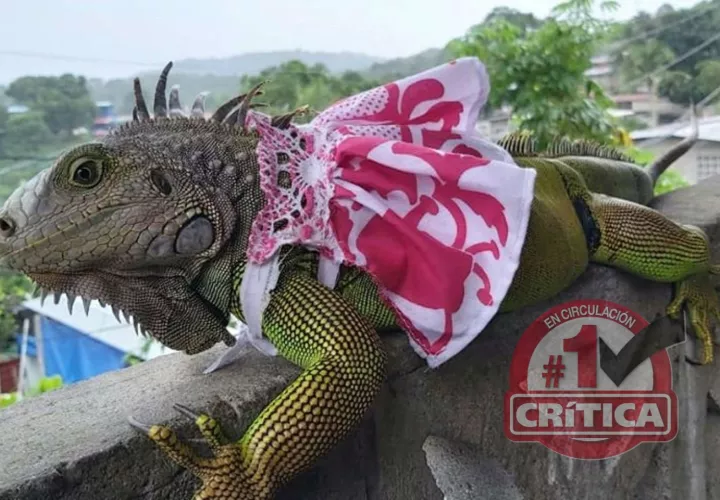 Iguanín, como le dicen de cariño a este singular integrante de la familia López, es muy dócil, por lo que colocarle la especie de chaqueta o capuchón, que ingeniosamente le diseñó la señora Viodilda, no fue difícil.