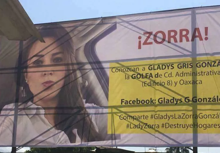 La valla estaba encabezada con el insulto 'zorra' en grandes letras de color rojo y, después, incluía la frase: "Conozcan a Gladys la golfa (mujer fácil)", además de las etiquetas #DestruyeHogares, #LadyZorra y #GladysLaZorraGonzález, para facilitar su viralización en las redes sociales.