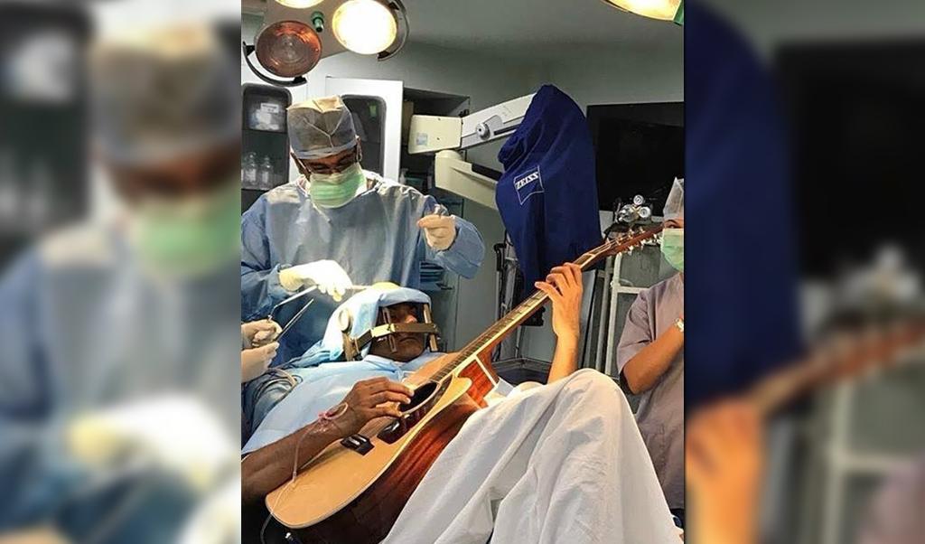 Músico indio toca la guitarra mientras le operan el cerebro