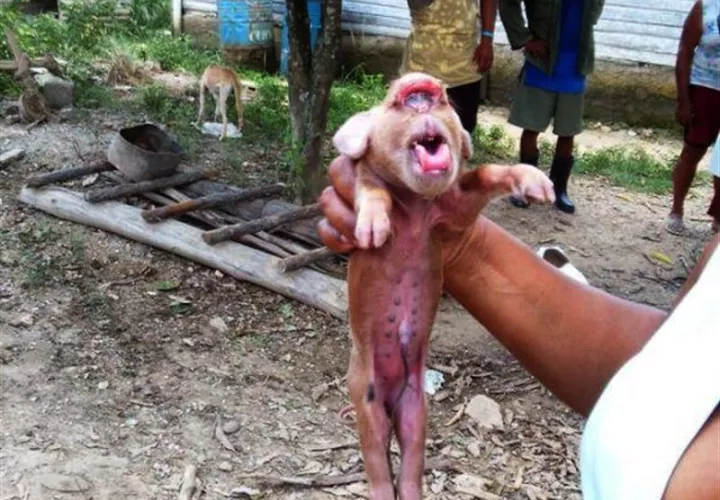 Una cerda parió en un pueblo del oeste de Cuba una camada de diez lechones de los que uno, a diferencia de sus hermanos, es de color pardo y tiene un rostro con facciones que se asemejan mucho a las de un mono, publicaron medios de la isla.