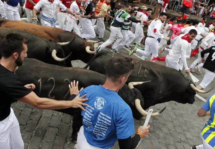 El penúltimo encierro de las fiestas de Pamplona (norte) tuvo de protagonistas a los toros de la ganadería Núñez del Cuvillo, que protagonizaron una rápida carrera de dos minutos y diez segundos hasta la plaza.