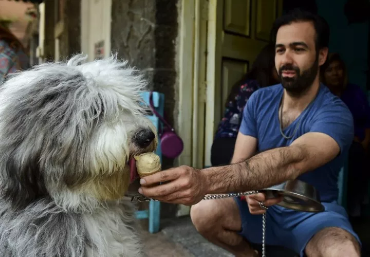 Una heladería en la Ciudad de México hace helados dulces para perro que los canes aprovechan para refrescarse del calor en temporada de primavera.
