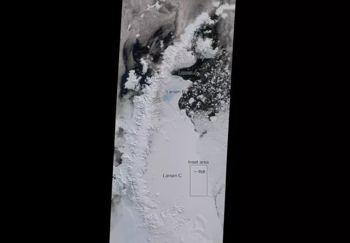 Un iceberg de unos 5.800 kilómetros cuadrados, el más grande de la historia, se ha desprendido del segmento Larsen C de la Antártida.