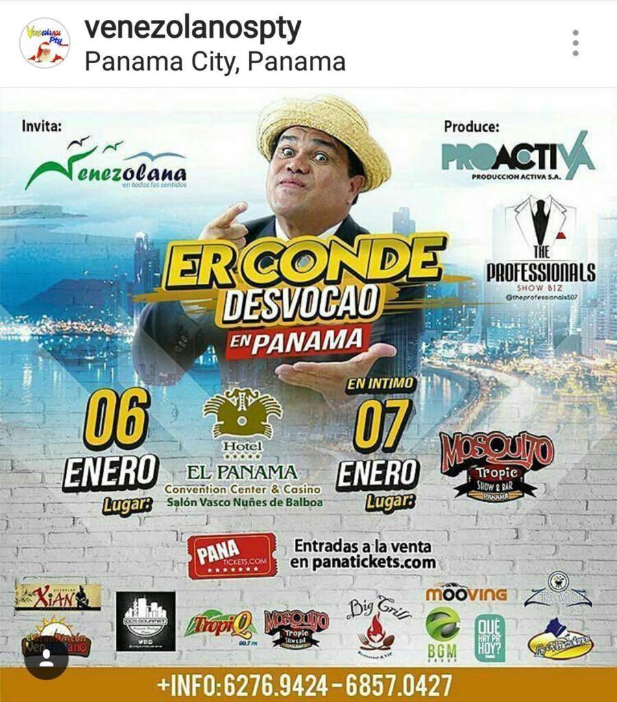 El evento "Er Conde Desvocao en Panamá", previsto para los días 6 y 7 de enero en un hotel de la capital, fue cancelado por la Dirección de Inspección del ministerio por carecer de contratos temporales de trabajo autorizados para artistas extranjeros, como lo exige la ley local.