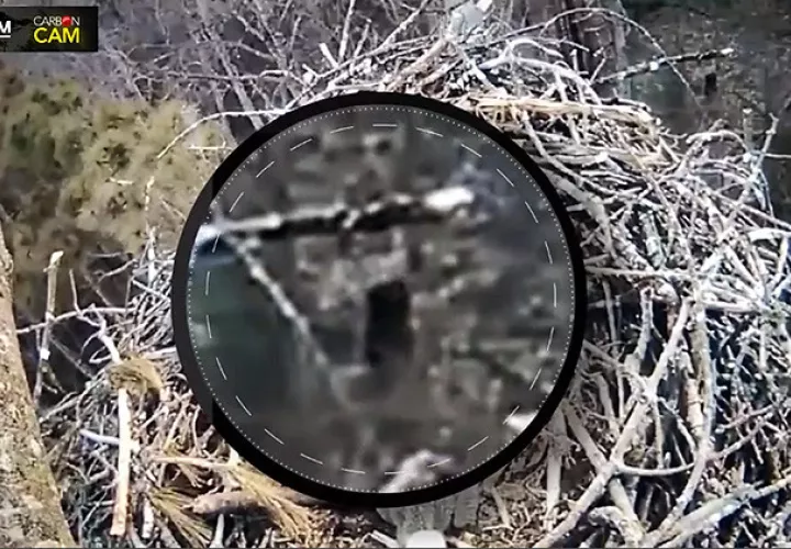 Una de las cámaras ocultas que filman a las águilas en su hábitat natural registró por casualidad a un homínido que se asemeja al ser conocido como 'Big Foot'. Así, en el documento gráfico se aprecia cómo una figura oscura camina bajo el árbol en el que se encontraba el dispositivo.