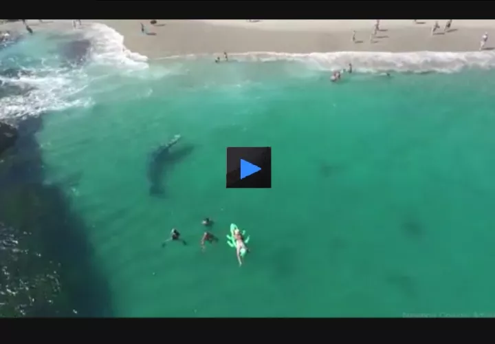Video: Ballena pasa entre bañistas sin que éstos se percaten