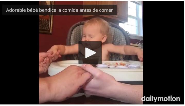 Un video muestra en la forma en que un pequeño, sentado en su mesita de comer, tiene tiempo para dar gracias a Dios por el alimento.