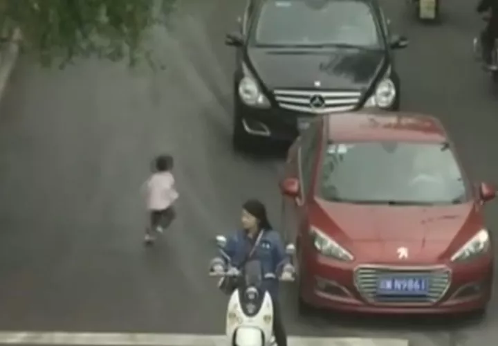 En un video que corre en las redes sociales, se observa a la pequeña, que no tiene más de 4 años, caminar sola por una calle transitada. Luego, la pequeña se mete debajo de un vehículo, justo cuando iba a ser atropellada, y sale ilesa.