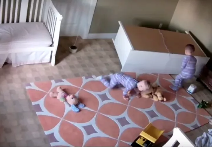 Una cámara de seguridad dispuesta en el dormitorio de dos hermanos mellizos captó la secuencia durante la cual los pequeños, quienes jugaban con los cajones de una cómoda de su cuarto, sufren un terrible accidente.