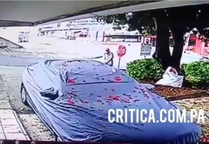 Aprovecha un descuido en Betania y se roba la cubierta de un auto (Video)