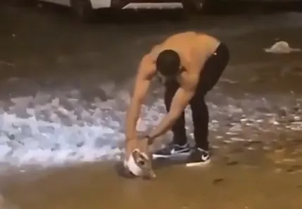 ¡Ataja! Este joven no le importó mojarse por ayudar a este animalito (Video)