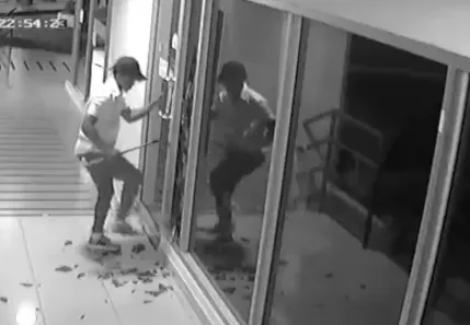 Gateando como chiquillo se mete a robar en un local (Video)