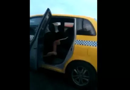 Dos taxis en plena calle se dan lo suyo