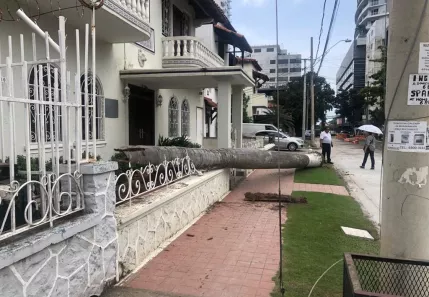 Enorme palma se desploma sobre la cerca de una casa en Bella Vista