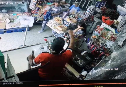 Delincuente salta hacia la caja registradora para llevarse el dinero (Video)