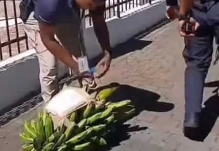 Sujeto lanza plátanos en la Procuraduría; exige justicia igual para todos (Video)
