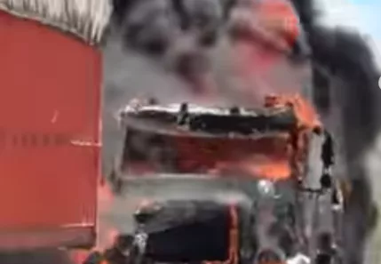 Bus diablo verde colisiona con uno de la Policía. ¡Ayala vida! (Video)
