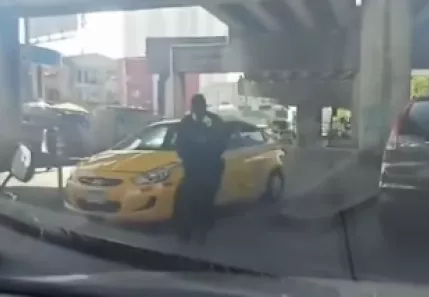 Taxista gira en "u" y huye de tránsito en la 5 de Mayo (Video)