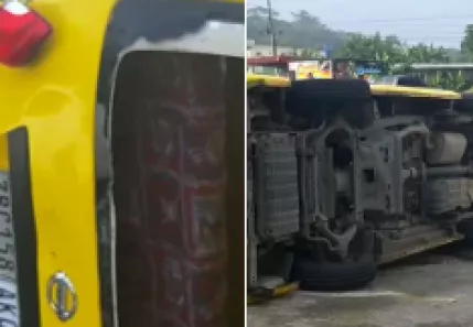 Busero hace giro indebido y se vuelca en el puente de las Américas (Video)