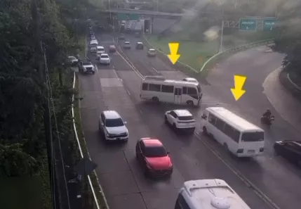Busero hace giro indebido y se vuelca en el puente de las Américas (Video)