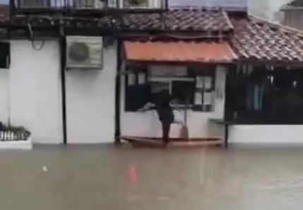 Un compa sacó su canoa en Vía Argentina; cayó un palo de agua (Video)